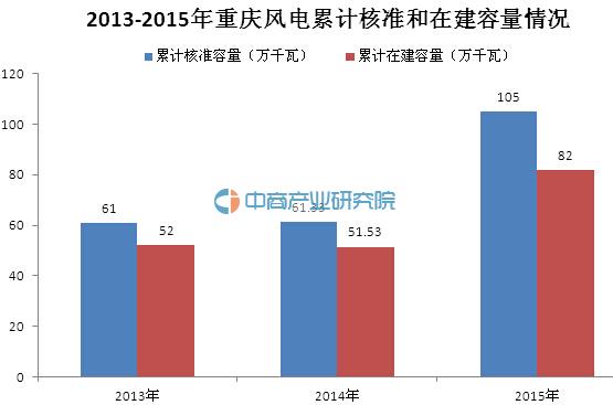 2015年重庆风电产业累计并网装机容量达到23万千瓦,风电发电量3亿千瓦时,风电累计核准容量105万千瓦,同比增加43.67万千瓦,累计在建容量82万千瓦,同比增加30.47万千瓦。