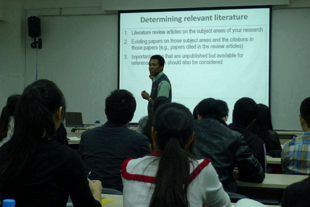 讲座过程中,霍顿教授就学术论文写作以及相关注意事项向同学们做了精彩的解读。从论文的立题,霍顿教授以恰当的比喻,形象的说明了立题的重要性,并和同学们