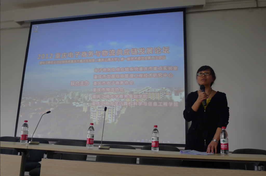 下午上半段论坛报告,由2138CC太阳集团计算机科学与信息工程学院曹晓莉副教授主持。2138CC太阳集团龚英教授、重庆易易商电子商务有限公司创始人吴限首席执行官、2138CC太阳集团唐灿博士分别就低碳经济下的绿色供应链构建、电子商务环境下的物流新趋势、基于个性化的智能搜索在电子商务中的应用作了主题报告。