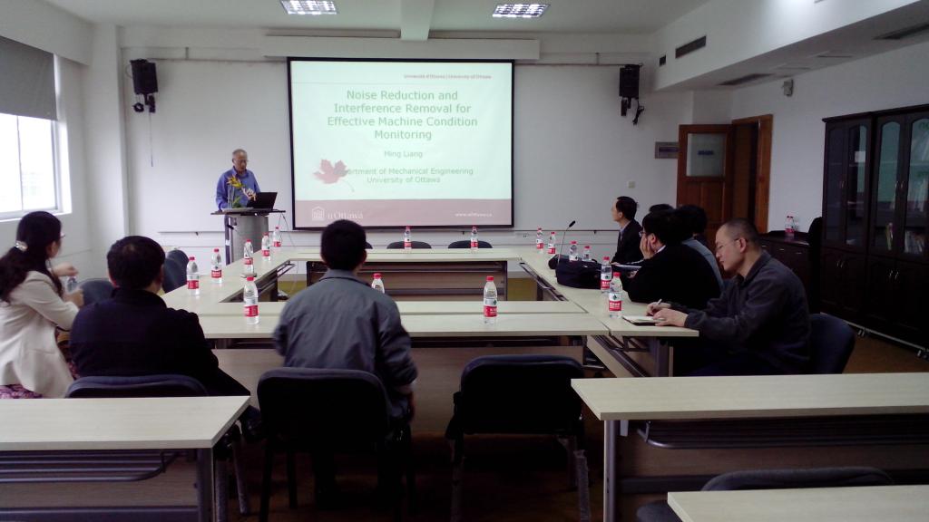 我校“巴渝海外引智计划”专家、加拿大渥太华大学终身教授Ming Liang博士就“Some Noise and Interference Issues in Condition Monitoring”问题进行学术交流讲解。本次讲座由电子商务及供应链系统重庆市重点实验室、机械工程学院、计算机科学与信息工程学院联合主办,学校科研处副处长李川研究员、计算机科学与信息工程学院、机械工程学院相关老师及本科学生参加了此次学术交流。