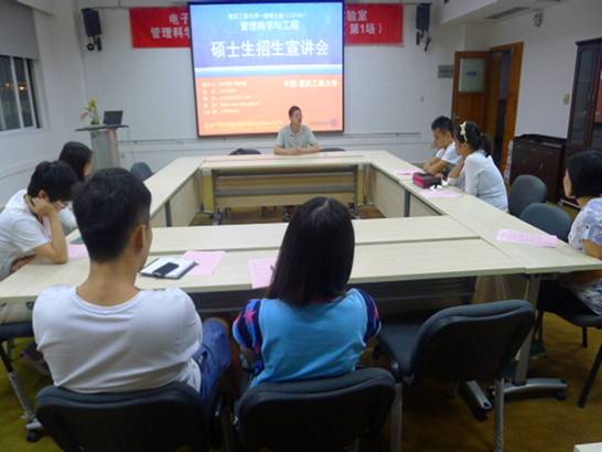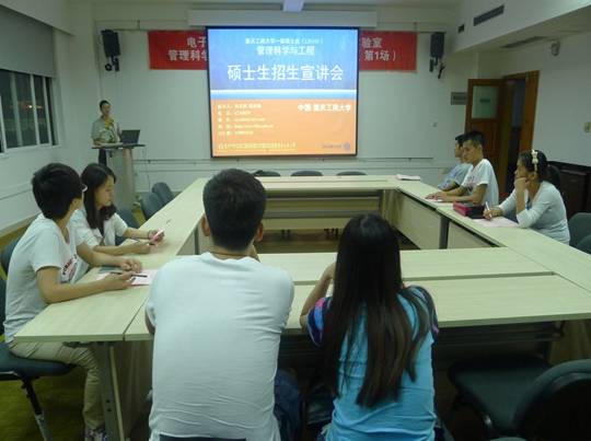 2014109晚,电子商务及供应链系统重庆市重点实验室在启智楼406会议室举办了第一场“管理科学与工程硕士研究生招生宣讲会”。