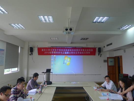 2015年5月27日上午九点,电子商务及供应链系统重点实验室2012级管理科学与工程硕士研究生毕业论文答辩于启智楼406,409会议室成功举行。