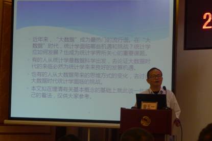 出席本届研究会的有厦门大学曾五一教授、美国圣地亚哥州立大学陈建伟教授、美国耶鲁大学马双鸽教授、美国宾州州立大学林共进教授等国内外学者、教授。他们分别在研究会上做了“大数据时代统计学的机遇与挑战”、“Mixture Transparent composite model for discrete cosine transform (DCT)in signal processing with Big Data”、“Big Data:Devil in detail”、“Statistics for Internet of Things”的大会报告。