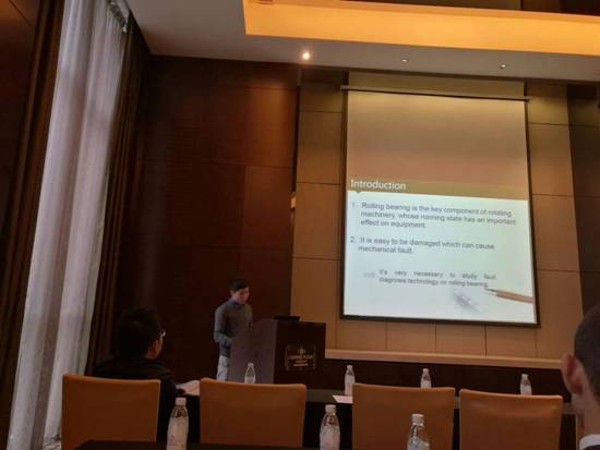 会议邀请国内外著名专家做了专题报告,对机械设备的故障诊断和健康管理技术提出了许多新的想法。会上,邓生财同学受邀做了名为 ”Rolling Bearing Fault Diagnosis Based on DBMs” 的报告,展示了自己在齿轮箱故障诊断方面所做的工作。