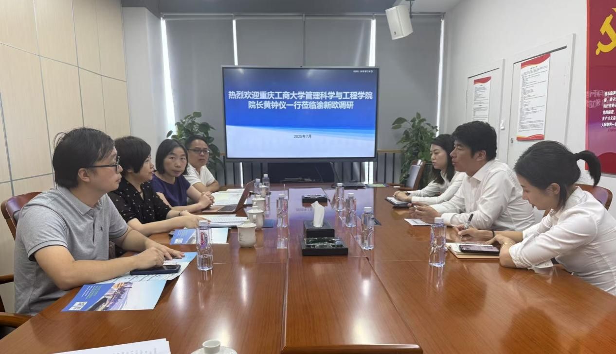 2025 年 7 月 9 日,我校管理科学与工程学院与渝新欧公司在渝新欧会议室召开专题研讨会。黄钟仪院长带队前往,大数据管理与应用系系主任杨家权、智能商务与供应链系统重庆市重点实验室副主任代春艳陪同,物流管理系副系主任石建力参加;渝新欧公司黄鹏部长及综合部张路遥、史丽娟出席会议。双方围绕国际物流通道建设、数据共享、人才培养等核心议题深入交流,旨在通过产学研协同破解行业痛点,推动国际物流通道升级。作为连接亚欧的重要枢纽,渝新欧通道在 “一带一路” 建设中意义重大,但当前面临境外基础设施薄弱、地缘风险影响、数据共享壁垒等挑战,此次会议为双方搭建了优势互补的合作平台。