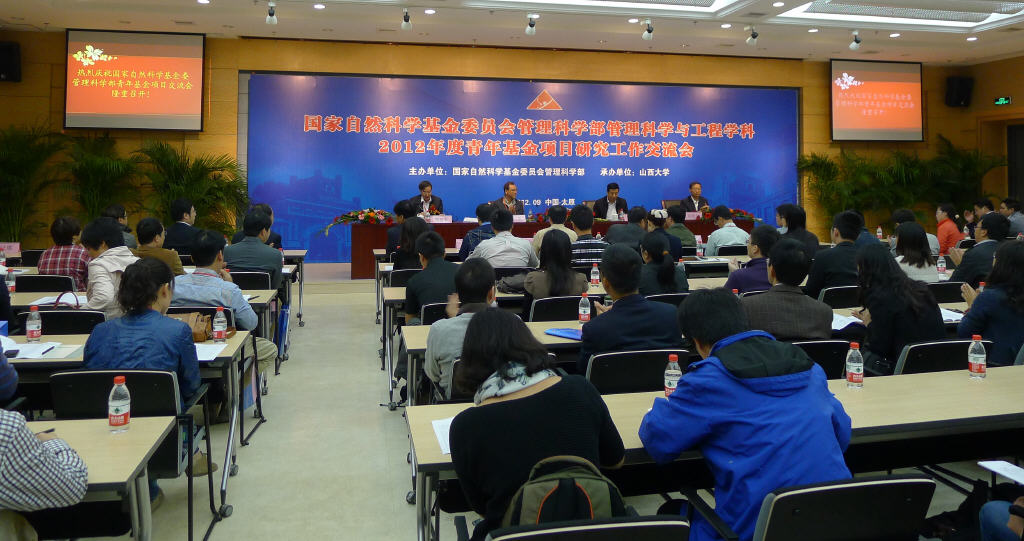 2012年9月26日-27日,国家自然科学基金委员会管理科学部管理科学与工程学科2012年度青年基金项目研究工作交流会在山西大学隆重召开。国家自然科学基金委员会管理科学部常务副主任李一军教授、管理科学部原常务副主任陈晓田研究员、管理科学部副主任高自友教授、管理科学部一处处长刘作仪研究员、管理科学部一处项目主任王宗润教授等基金委领导、山西大学校长贾锁堂教授、副校长刘维奇教授出席了交流会开幕式。重点实验室研究员陈久梅博士等100余名2011年国家自然科学基金管理科学与工程学科青年基金主持人、山西大学管理学科的师生以及山西省其他高校管理学科的有关老师参加交流会。