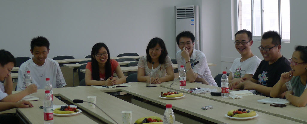 授匾仪式结束后,座谈会开始。五位毕业研究生分别回顾了自己三年的求学经历,抒发了自己的毕业感言,并对师弟师妹们提出了真诚的建议。师弟师妹也就自己困惑的问题,与毕业研究生进行了深入的交流。龚顺清教授、陈久梅副教授、曾波副教授、吴佑波博士等老师也与与会的同学们交流了自己想法与观点,祝愿毕业的同学们踏上工作岗位,尽快找到自己的位置,努力工作,在工作中成长和成熟。并希望一、二年级研究生同学们能够珍惜实验室研究环境和氛围,认真踏实地做学问。