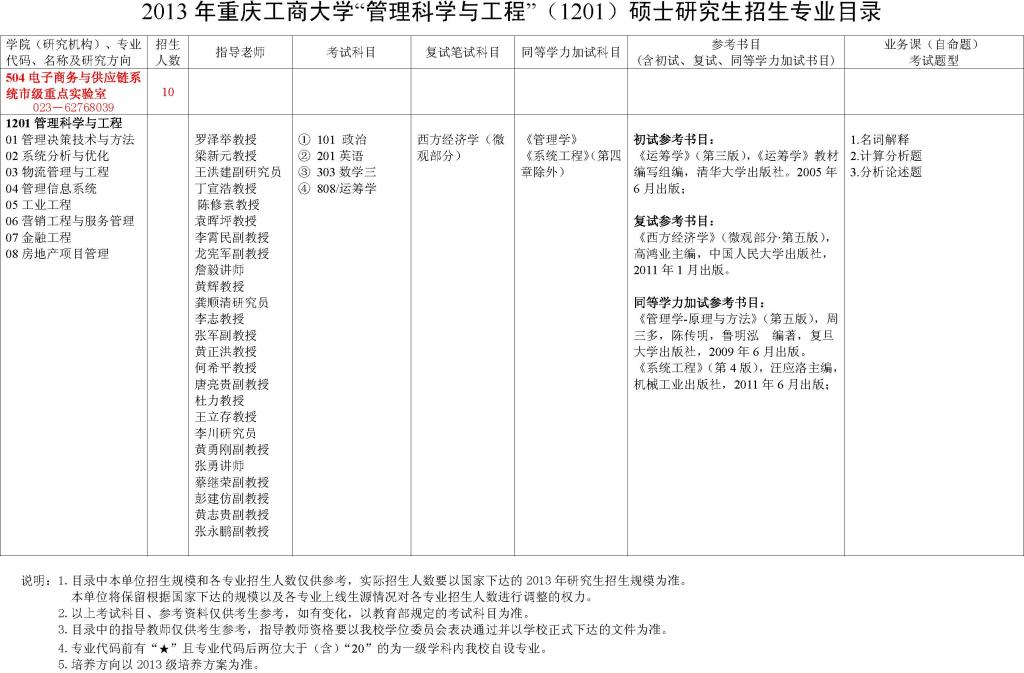 2013年2138CC太阳集团“管理科学与工程”(1201)硕士研究生招生专业目录